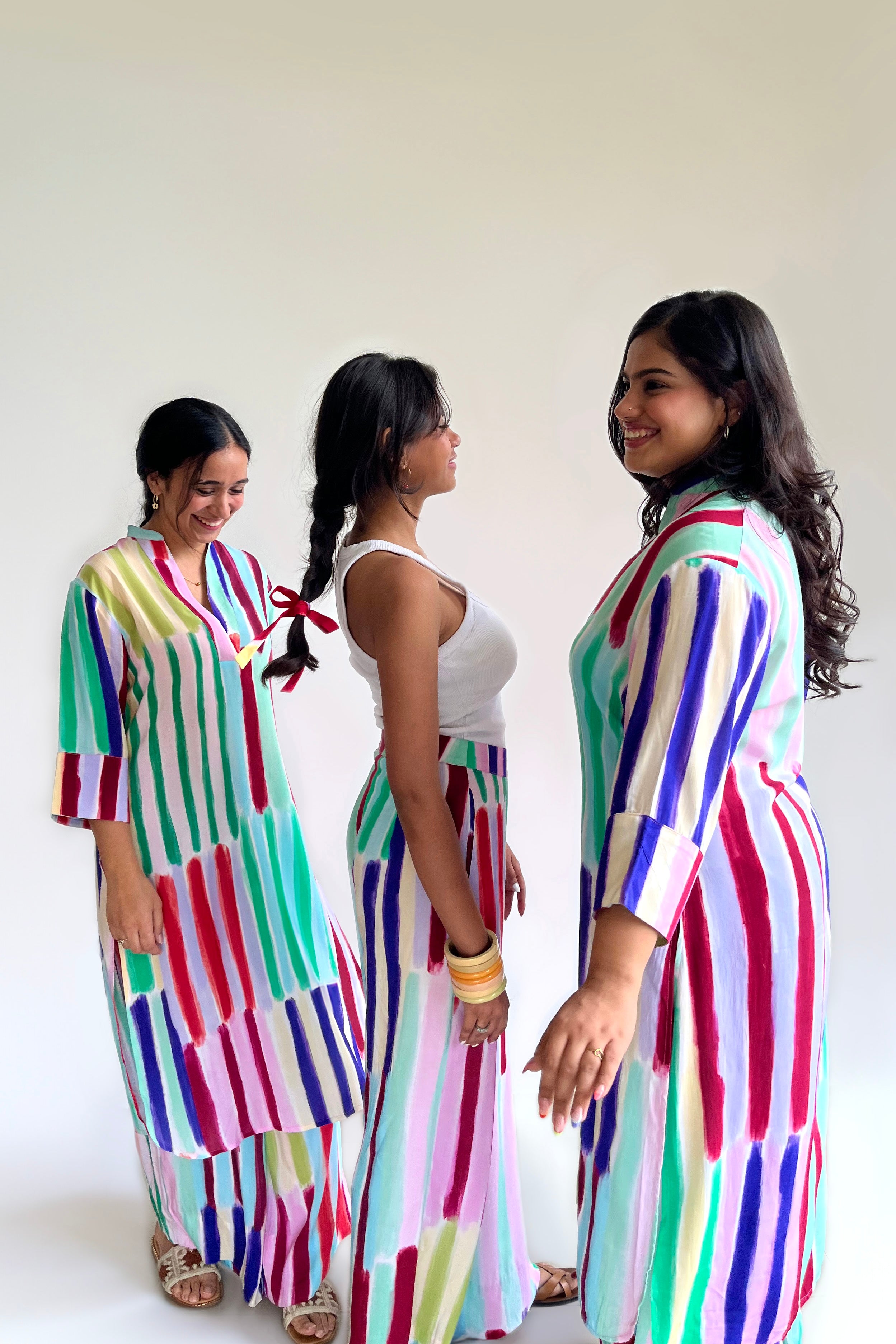 We create statement pieces for your wardrobe. Infused with colourful, maximalist, limited edition prints, we bring a touch of artistic flair to every outfit. Our collections are a mix of stunning maxi dresses, playful sundresses, no-brainer co-ords and statement shirts along with fun “Mom and Me” twinning sets for your kids — all designed to be chic, feminine and versatile.
